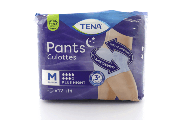 TENA Pants Plus Night Medium | Εσώρουχα ακράτειας, 12 τεμαχίων Το TENA Pants Plus Night είναι λευκά, απαλά και άνετα εσώρουχα νυχτερινής ακράτειας που