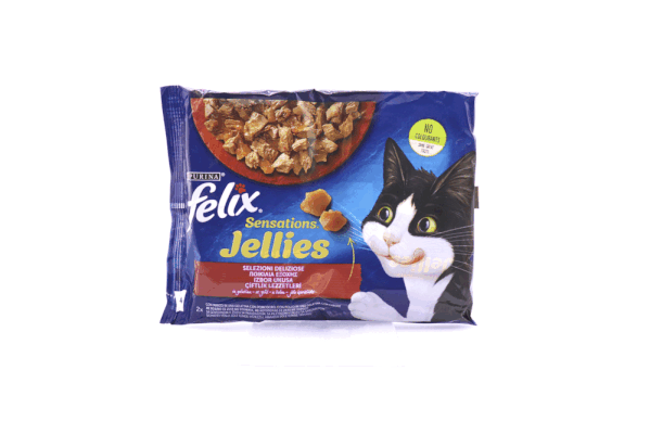 Φακελάκι υγρής τροφής για Γάτες. FELIX Sensations Jellies Πολυσυσκευασία με Βοδινό και Κοτόπουλο 4x85g